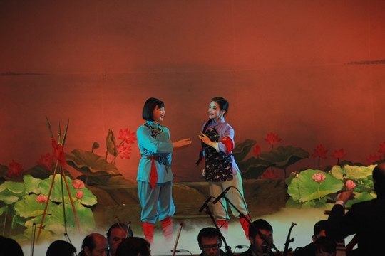 在近两个小时的精彩演出中:著名唱段《洪湖水浪打浪》、《没有眼泪没有悲伤》、《看天下劳苦人民都解放》萦绕于耳边;第五场中女主角韩英的机智、勇敢、坚贞不屈赢得了在场观众的热烈掌声,全场气氛达到了高潮……最后,演出在观众们经久不息的掌声中落下帷幕。(文/大学生记者团莫紫棋 摄影/王婧妮)