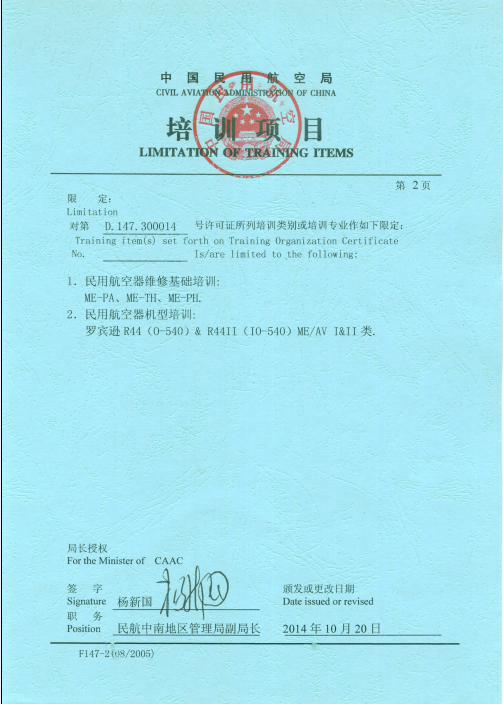 10月28日,民航中南地区管理局向我院颁发了民用航空器维修基础培训(ME- PA/TH/PH)和机型培训(R44)增项项目的培训资格证书。至此,我院实现了民用航空器维修机型培训项目零的突破,并获得民用航空器维修基础培训全部项目(ME-TA/PA/TH/PH、AV)的培训资格。