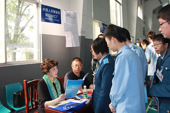 参加招聘会的军工企业达14家,很受学生青睐。飞机维修1203班的裴同学千方百计参加某军5721厂的面试,期望能够成为他们当中的一员。他说:“这个厂子离我家近,发展前景好,我就希望能面试成功。”发动机1201班赵同学成功应聘某军4723厂,这是海军的一个维修工厂,入职转正后月薪达3000多元,他很满意。珠海保税区摩天宇航空发动机维修有限公司很受学生欢迎,投简历的排了长长的一队,最后收了20个学生的面试简历。祝福他们都能成为幸运儿。
