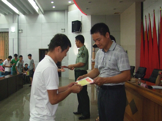 8月4日上午,我院2014届直招士官入伍欢送会在跳马校区举行,天心区人武部副部长李向阳、我院党委副书记蔡海鹏等出席欢送会,192名2014届直招士官学员参加会议并领取入伍通知书。