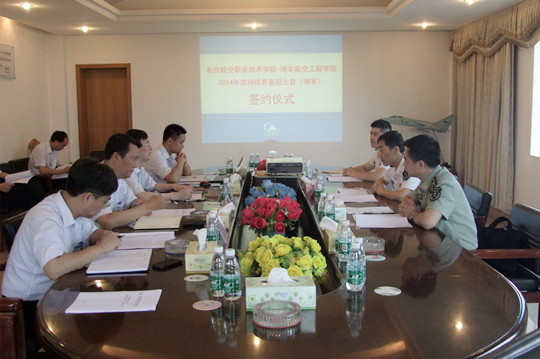 6月10日,我院与与海军航空工程学院签订联合培养协议,试点定向培养飞机控制设备与仪表专业直招士官,正式拉开了我院2014年军地院校共培定向直招士官(海军)的序幕。学院党委书记陈勇、海军航空工程学院训练部军务处处长曹立英、军务处参谋孙艺靓、省军区军务部参谋镇瑜等领导出席签约仪式,仪式由党委副书记蔡海鹏主持。陈书记与曹参谋还就院校间的进一步合作进行了深入的交谈。