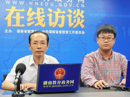 院长朱厚望(左)做客湖南教育政务网在线访谈