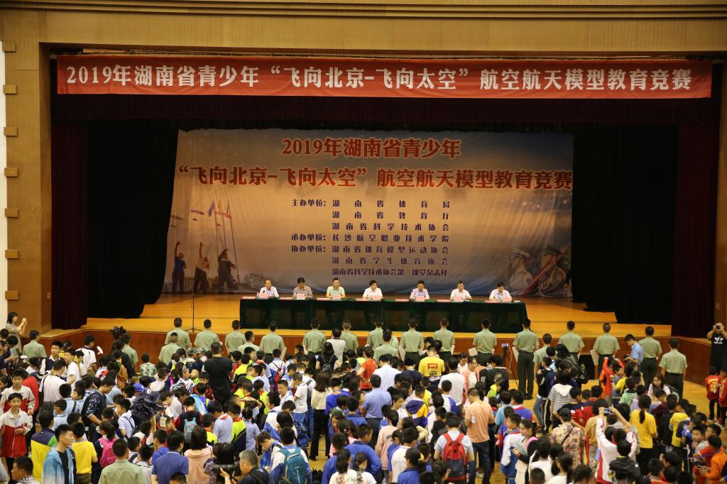 航空航天技术是国之重器,是大国智造的代表、大国竞争的重点。6月1日,2019年湖南省青少年“飞向北京―飞向太空”航空航天模型教育竞赛在我院跳马校区开幕,用一种特殊的方式来庆祝“六一”儿童节。来自全省13个地市州242个参赛学校和单位的3933名选手5518人次参加了比赛,参赛人次创历史最高。