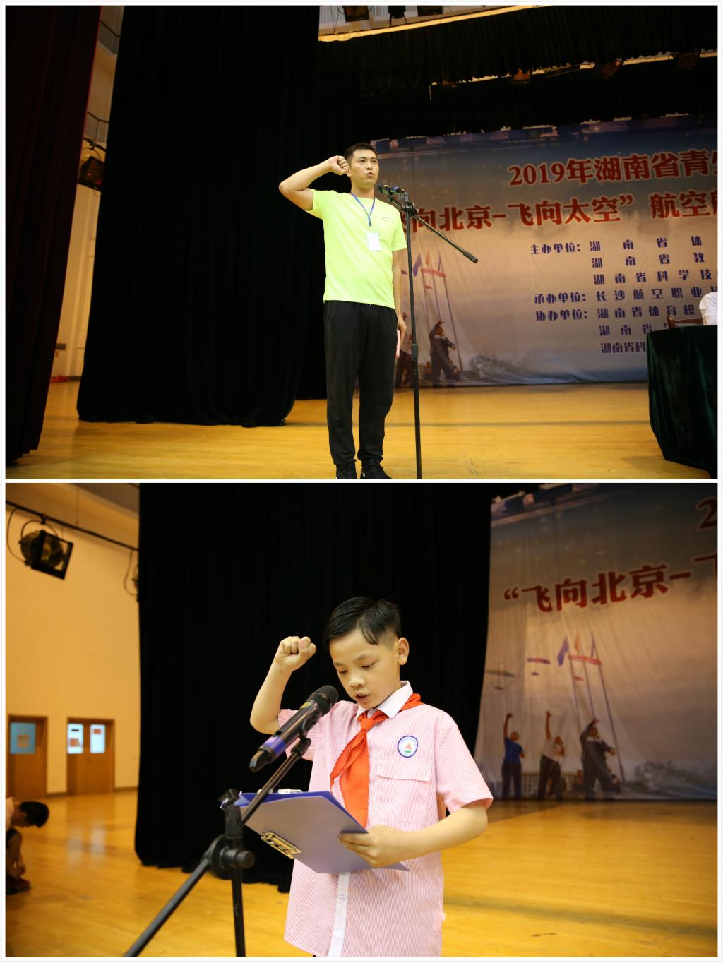 开幕式上,杜利民处长宣读航空绘画表彰文件。主席台领导为获奖选手代表颁奖。邵阳市东塔小学唐逸笑同学作为参赛选手代表发言,我院尹岳老师作为裁判员代表宣誓。