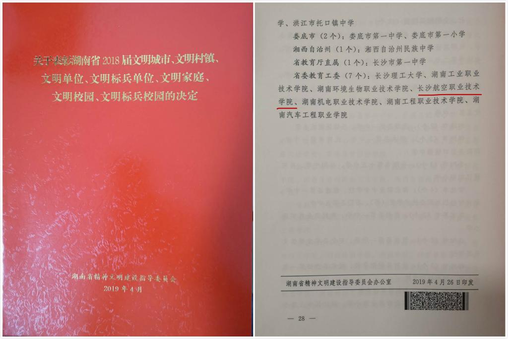 近日,湖南省精神文明建设指导委员会发文表彰2018届文明城市、文明村镇、文明单位、文明标兵单位、文明标兵校园,我院喜获2018届“湖南省文明标兵校园”称号,全省共有7所高校入选,这是我院继荣获“湖南省文明标兵单位”称号之后,学院精神文明建设工作取得的又一重大标志性成果。