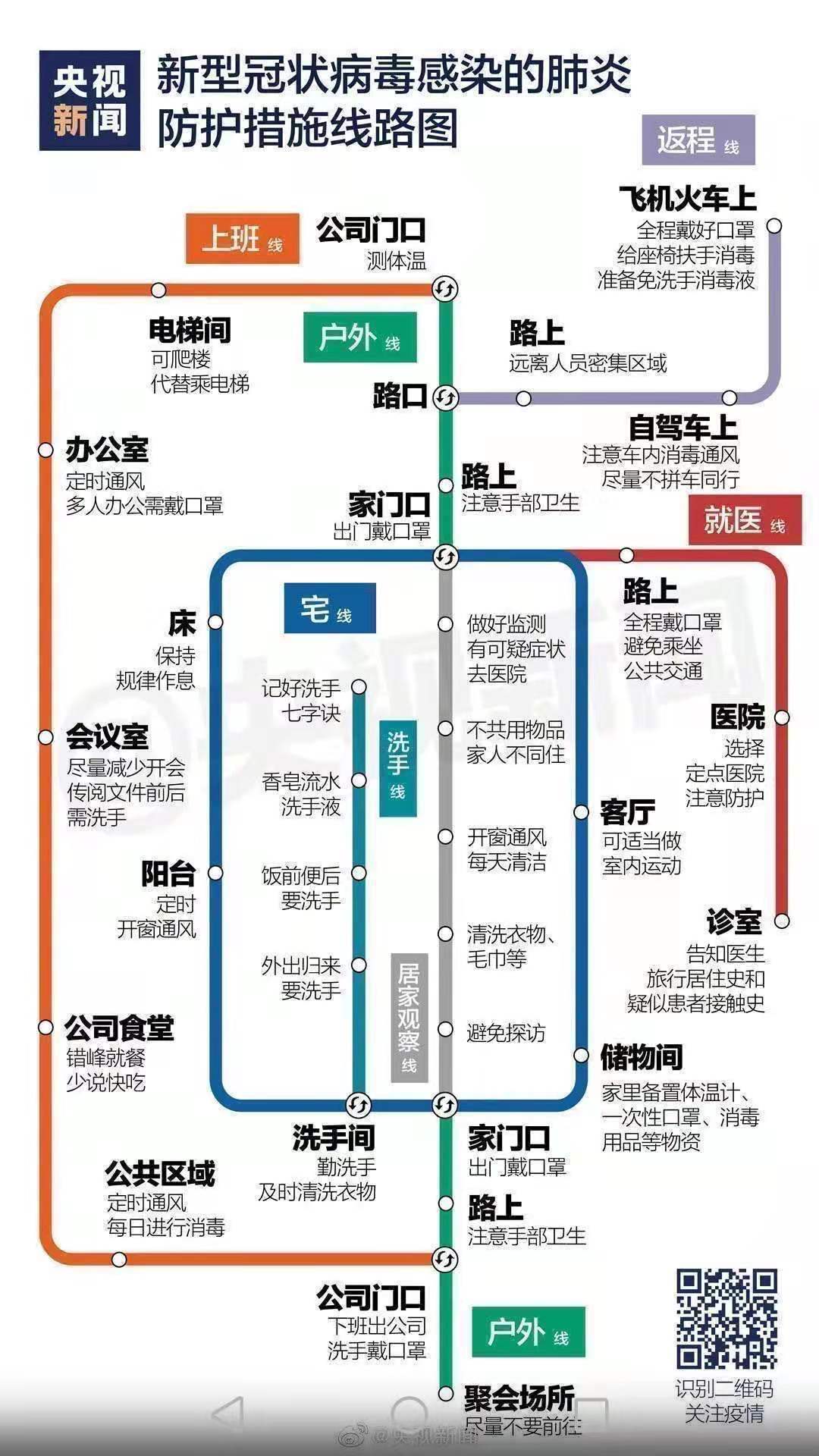 新型冠状病毒感染的肺炎防护措施线路图