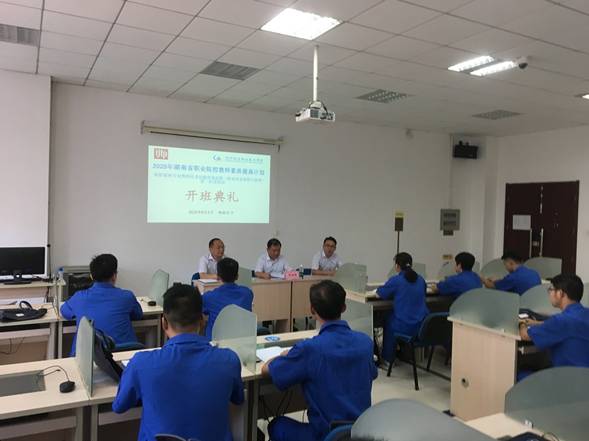 来自湖南省内8所高职院校15名学员将在我院完成为期20天的项目即第一阶段培训学习。开班典礼上,陈湘黔代表学院党委以及全院师生员工热烈欢迎各高职院校教师赴我院培训学习,向各位老师介绍了我院的办学历史、办学特色、专业设置等方面的基本情况,随后分析了举办职教师资国培项目培训班的背景、目的和意义,对学员尽快转换角色、严格遵守纪律、认真学习研讨、确保安全顺利等方面提出了明确要求。机电学院院长熊纯介绍了此次培训的主要日程安排和注意事项。