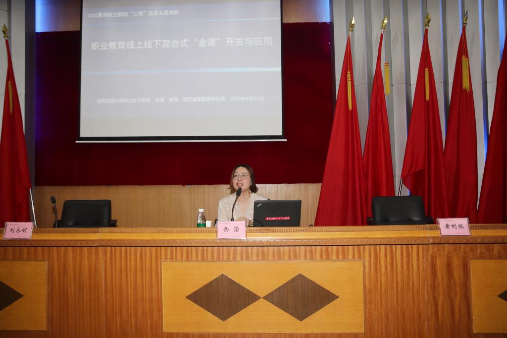 8月24日下午,湖南铁路科技职院余滢教授作了《职业教育线上线下混合式“金课”建设与教学应用》的专题讲座。余滢从混合式课程开发思路、资源开发、教学实施三个方面对如何打造混合式“金课”做了全面的阐述,既有对“金课”的架构、设计的深度研究,又有以《铁路货运组织》课程为实例的线上线下相的结合混合式教学课堂组织实施。余滢还就“金课”设计与实施中的重点难点问题,和我校教师进行了深入互动探讨,启发大家深入思考。