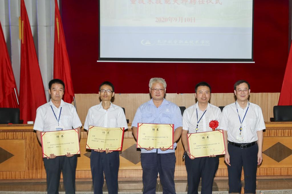 在技术技能大师聘任仪式上,蔡海鹏副书记宣读关于组建孙红梅首席技术技能大师工作室、魏印红技术技能大师工作室的通知与关于续聘黄登红等5位技术技能大师的通知等文件,陈勇书记为2位新聘、5位续聘技术技能大师颁发聘书。