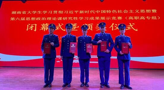 9月27日,由湖南省教育厅、湖南省委教育工委主办的湖南省大学生学习贯彻习近平新时代中国特色社会主义思想暨第六届大学生思想政治理论课研究性学习成果展示竞赛决赛在长沙商贸职业技术学院举行。由我院思政课部张艳芳、田禾两位老师指导的学生团队以《奋进新时代 强军勇担当》为主题进行了精彩的展示,并荣获一等奖。
