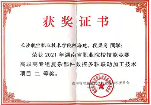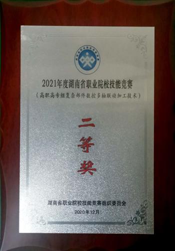 12月17-18日,湖南省2021年度职业院校技能竞赛高职高专组“复杂部件数控多轴加工技术”赛项在湖南工业职业技术学院举行。我院代表队经过积极备战、奋力拼搏,荣获该赛项第2名、二等奖。