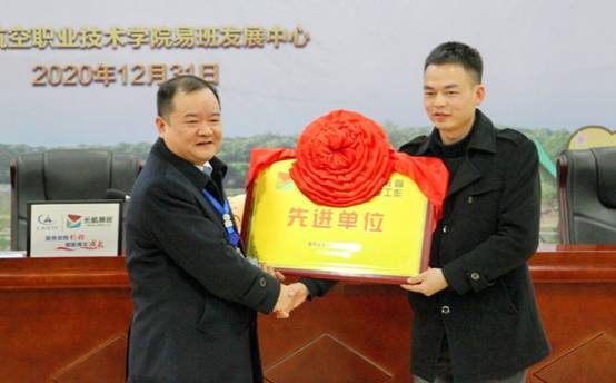 湖南省易班发展中心副主任王正坤(右一)为我院颁发奖牌