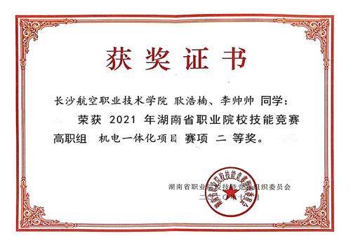 12月26日-27日,2021年湖南省职业院校技能竞赛“高职机电一体化”赛项在我院举行,来自全省10所职业院校的36名选手参加了比赛。经过2天激烈的角逐,我院代表队经过奋力拼搏,荣获一等奖1项、二等奖1项,展现了良好的职业素养和精湛的专业技能。