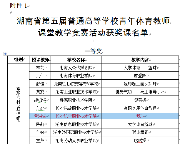 黄洪波老师为主参加的课堂教学竞赛,不断深入研究体育课程特性、教学特征、资源特点,不断优化体育课程结构、完善教学资源、改进教学方法、提炼教学特色,其精品篮球课经过层层评选,最终获得湖南省第五届普通高等学校青年体育教师课堂教学竞赛一等奖,我院获得优秀组织奖。