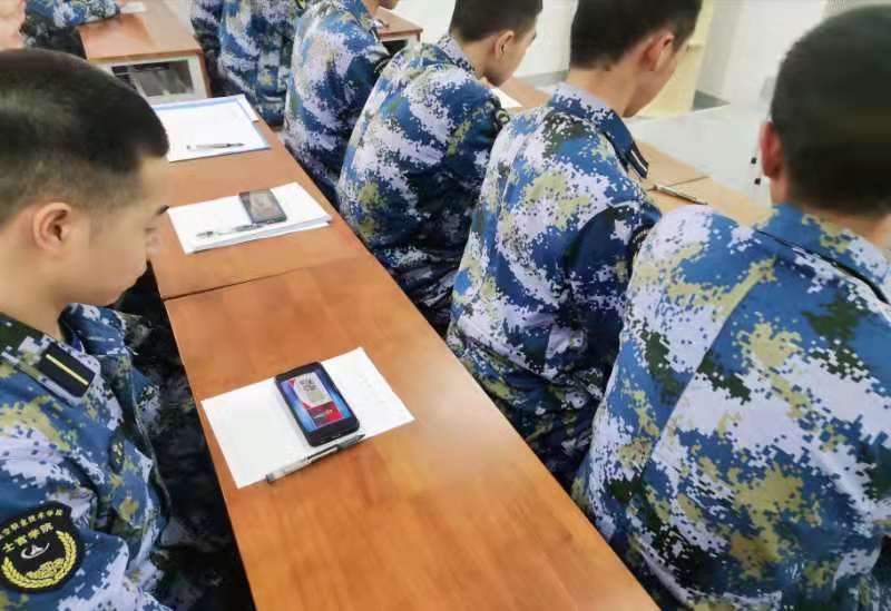学生在教室通过手机客户端进行观看