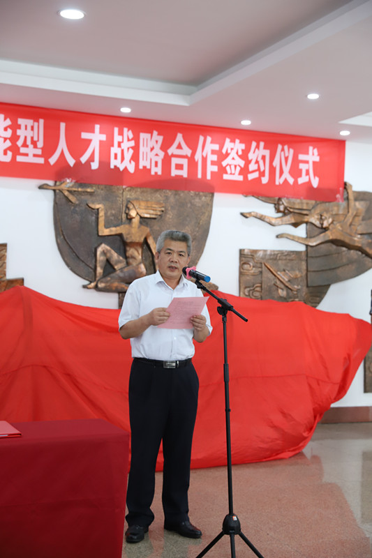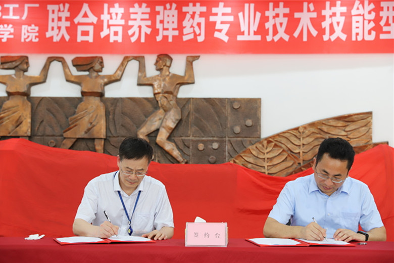 7月15日下午,桂林某厂与我院联合培养弹药专业技术技能型人才战略合作签约仪式在我院航空电子实训中心举行,某厂厂长张建春、我院院长陈勇共同为该厂委托我院维护管理的某两型弹药及配套工装揭幕。签约仪式由我院党委书记刘喜宾主持,该厂副厂长夏为浩、陈湘黔,我院副院长朱国军、彭连刚以及部分教师、学生代表共计50余人参加。