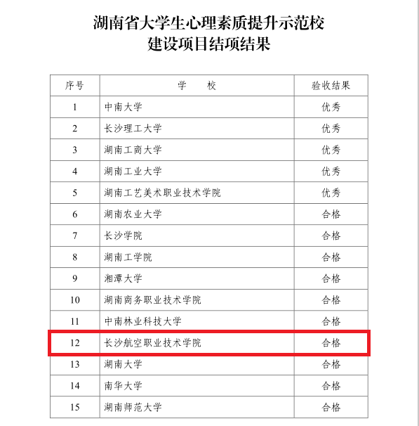 湖南省大学生心理素质提升示范校建设项目结项结果