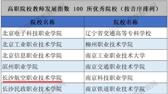 我院入选全国100所高职院校教师发展指数优秀院校榜单(截图)