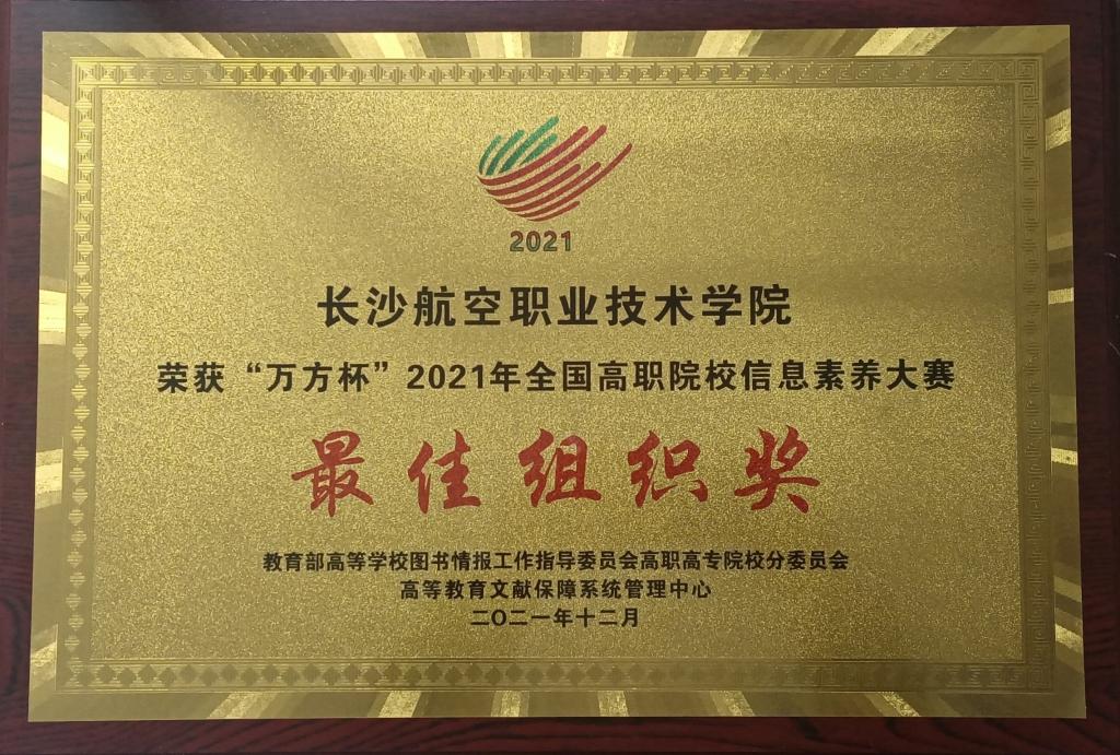 近日,我院在2021年“万方杯”全国高职院校信息素养大赛中喜获最佳组织奖。