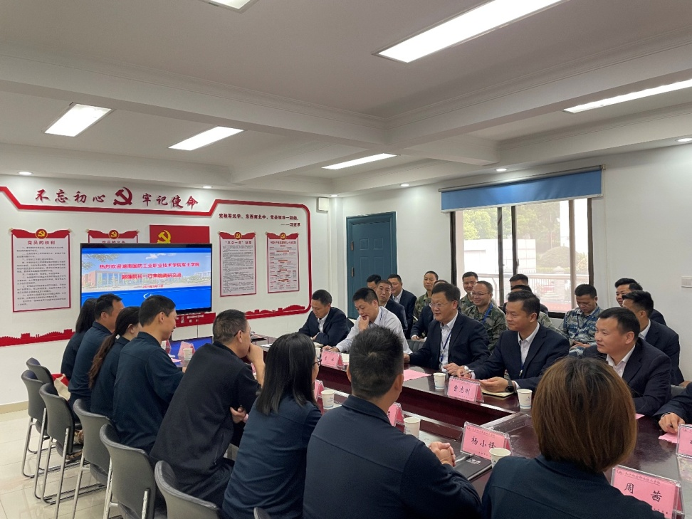 5月12日上午,湖南国防工业职业技术学院军士学院院长郭强一行8人来我院调研交流,我院军士学院院长王俊、党总支书记曹志刚、武装部长兼副院长李祥接待了来访者,双方在武装部204会议室进行了座谈交流。军士学院助理、教(辅)导员参加座谈会。