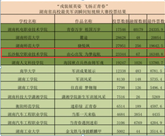 近日,由湖南省高等教育学会国防教育专业委员会联合湖南教育电视台国防教育频道举办的“戎装展英姿·飞扬正青春”湖南省高校最美军训瞬间短视频大赛评选结果公布,我院选送的作品《由心出发,为梦起航》荣获一等奖。