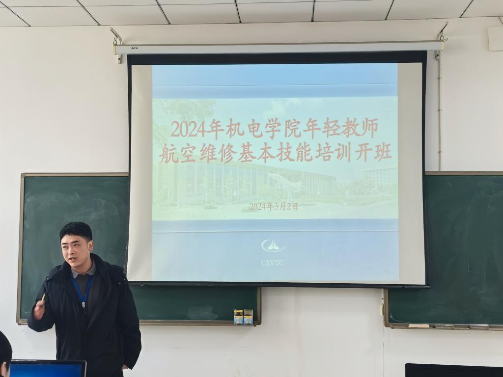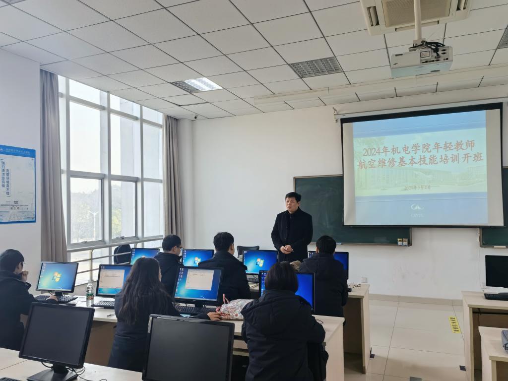 3月2日下午,机电学院新进教师航空维修基本技能培训班在航空机电实训大楼205教室开班。石强等8名年轻教师参加培训,开班仪式由机电学院院长陈律主持。