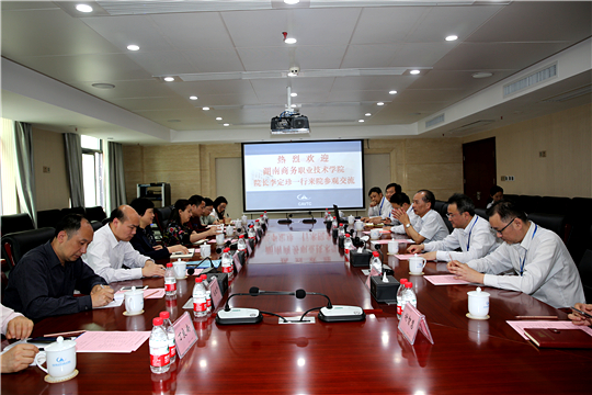 4月8日下午,湖南商务职业技术学院院长李定珍一行八人来院交流内部质量保证体系诊断与改进工作。我院院长朱厚望、副院长朱国军接待了来访者,并陪同参观了航空馆、航空装备展示坪等场所。