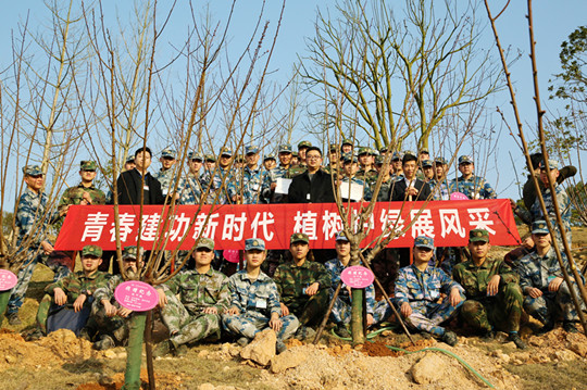 士官学员们在手植的校友林里合影