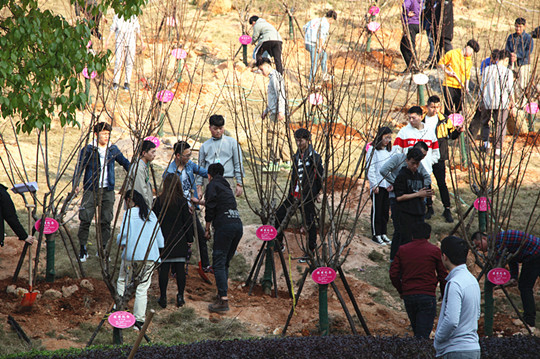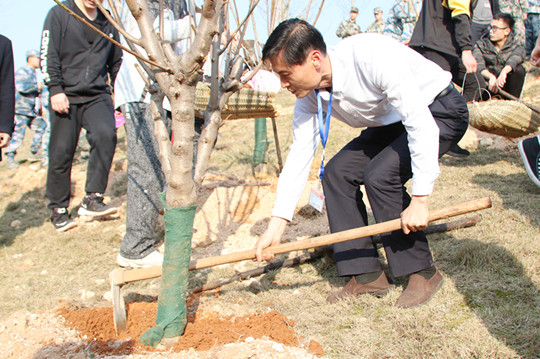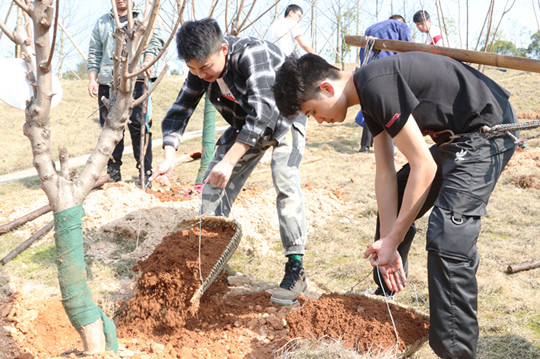 和风送暖,万物复苏,又到春光明媚植树时。3月12日,我院140余名师生在党委书记陈勇的带领下,亲手在跳马校区校友林里种上48棵红叶桃。扶植苗木、培实新土、堆起围堰、提水浇灌……大家干的热火朝天,阳光下,笑脸盈盈,未来的桃李芬芳就在那枝头的花骨朵里绽放。(文/新闻中心 刘嫄 党委学生工作部 胡译文 摄影/大学生通讯社 王和轩 时振鹏)