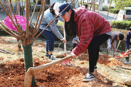 学子们认真培土