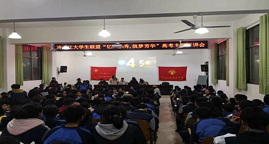 2019年1月28日晚经过一个小时的前期准备,冷水江市第一中学的高三学子陆续进入会场,18:30会场已经坐满,“忆织独秀,筑梦芳华”主题宣讲会正式开始,来自国防科大,四川大学,厦门大学,清华大学,上海大学的往届毕业生分别向同学们分享了高考的经验分享,向往的大学生活以及一系列的国家对大学生的扶持政策,在整个宣讲过程中,我们详细的介绍了国家助学贷款、奖学金、助学金、勤工俭学等,政策内容。本次宣讲会我们给同学们吃了一颗定心丸,不用同学们担心上大学后的经济问题,同时也给同学们介绍了高考经验,能让同学们更好的进入高考状态,安心备战高考,整个宣讲会圆满举办。