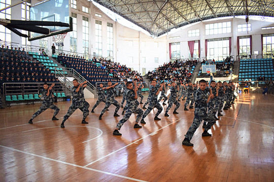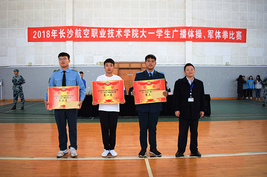 一年一度的大一学生广播体操、军体拳比赛,既是对全体同学身心素质、精神风貌的一次大检阅,也是我院体育教学成果的一次集中展示。同学们步伐整齐、口号洪亮、动作有力,精神饱满,体现了我院学生团结拼搏的进取精神,也充分展示了我院学子朝气蓬勃青春飞扬的精神面貌。 本次广播体操、军体拳比赛决赛分两校区进行,经过前期基础教育学院和士官学院的预赛,两校区共推荐出20个班级参加院级决赛。通过紧张而又激烈的角逐,空乘1803、检测1801、无人机1803班分别获本次广播体操比赛前三名;导弹1805、导弹1803、通航1805班分别获得本次军体拳比赛前三名。