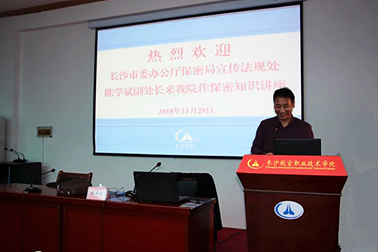 为进一步增强涉密人员保密意识,提高学院保密工作水平,11月29日下午,我院在跳马校区第一学术报告厅举行了保密专题教育,并邀请长沙市委保密法规宣传处副处长陈学斌授课,46名涉密人员参会。会议由院办主任黄利银主持。