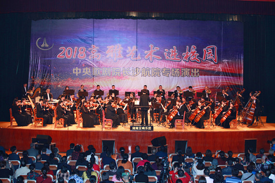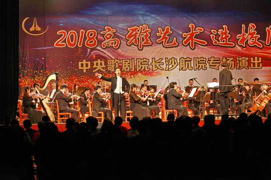 11月1日晚,由教育部、文化和旅游部、财政部共同主办的“2018高雅艺术进校园活动——中央歌剧院长沙航院专场演出”在我院跳马校区体育馆举行。教育厅体卫艺处处长彭四龙、体卫艺处正处级调研员金彪、体卫艺处副主任科员张志敏、我院院长朱厚望、学院党委书记陈勇等领导出席活动,特邀请长沙五七一二飞机工业有限责任公司原厂长朱林发、原党委书记马国忠和退休老干部,与学院师生共3000余人观看演出。来自中央歌剧院的艺术家们以华丽的唱腔和精妙的演奏,演绎了多部世界经典歌剧的选段、选曲,为现场的两千多名师生带来一场非同凡响的艺术享受。