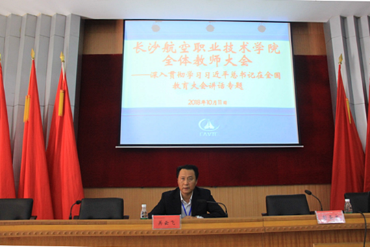 最后,关云飞副院长对下一步学院教学工作做了部署。他说,我们要把立德树人作为学院教育教学工作的主线,融入思想道德教育、理论与实训课程教学、社会实践教育等各环节,贯穿学生三年的大学学习生活。课程教学、课程改革、教材建设、教学管理都围绕立德树人这个目标来设计、来开展,培养适应航空产业高质量发展的德智体美劳全面发展的高端技术技能人才。围绕着讲话精神的贯彻落实,关副院长还谈了大国工匠实验班的筹备、在线开放课程的规划建设、教学资源与教材建设,探究式互动式课堂教学设计等工作。他要求,广大教师一定要安心从教、热心从教,耐得住寂寞,加强学习,不断提升自身能力,高标准推进我们的各项工作,只有这样,我们才能不负党和国家的重托,才能将习近平讲话精神落到实处,培养德才兼备的航空技术技能人才,培养合格的社会主义建设者和接班人。(教务处 彭圣文 供稿)