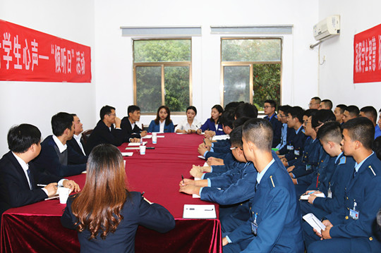 活动现场学生代表们积极发言,陈副院长认真听取同学们的意见,耐心回答提出的问题,与大家展开亲切交谈,并表示一些现场无法解决的问题将会在办公会上重点讨论和解决,同时也鼓励学生对学科建设及学院管理上多提宝贵意见,积极参与学院建设。有学生代表提出已签订三方协议后,为何不能再参加理想中的公司面试,毕业生就业指导中心处长张伟华回复说,已签约的同学再去其他公司,不仅会占用其他同学的就业机会,而且也会影响学院整体的就业诚信,因此会优先推荐未签合约的毕业生;对于明年7月份才下厂的毕业生安排,教务处处长彭圣文回复说,学生在校的第六学期应积极参与实习,如果自己未找到实习单位的同学,学校将统一安排实习,这是一门必修课程,未合格的同学将不能按时毕业;针对学生代表提出专升本与就业冲突的问题,相关领导现场回复告诉大家专升本、入伍和就业不矛盾,只要按照程序进行申请,已考上本科和入伍的同学可免责并解除就业协议;对于同学们最关心的供水问题,陈副院长回复大家,学院非常重视,并且多次与政府协商,但短期内暂不能解决,学校已采取了多项措施保证基本用水,希同学们节约用水,共渡难关。