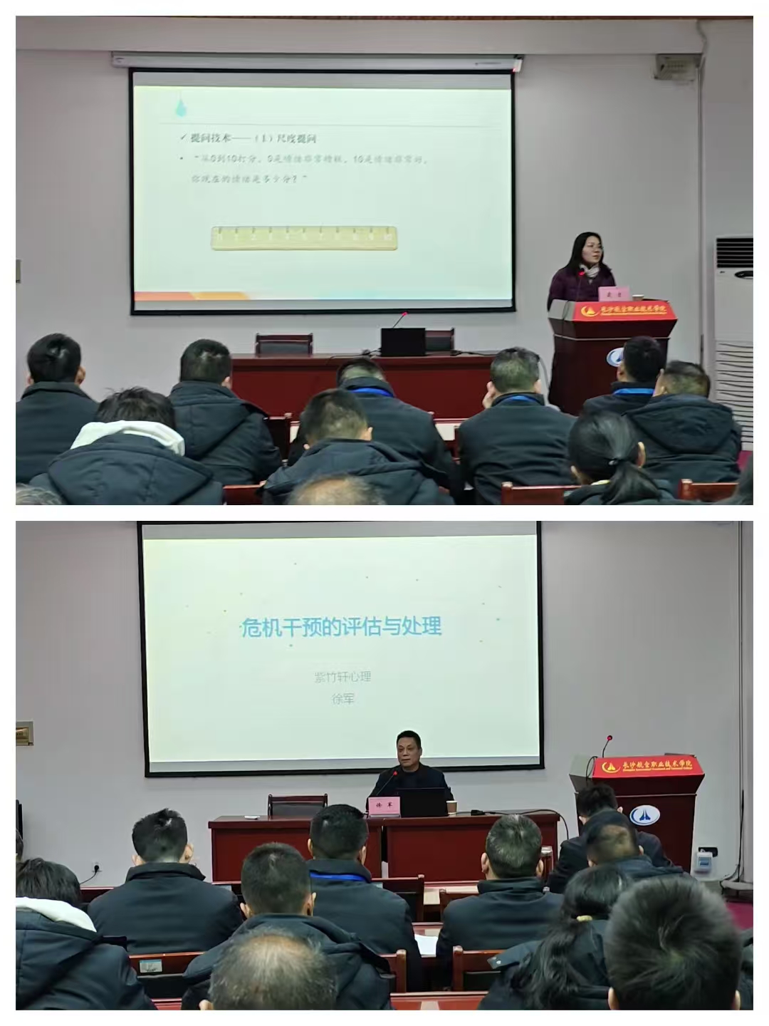 研讨会特邀湖南工商大学心理健康教育中心主任戴吉教授和中国心理卫生协会首批注册心理咨询师、湖南省心理卫生协会理事徐军分别作《辅导员心理危机访谈技能》和《危机干预的评估与处理》专题报告。两位专家的报告既有理论高度,又紧密贴合高校学生工作实际,具有很强的针对性和指导性,为更好地开展学院学生心理健康教育与危机干预工作提供了有益借鉴。