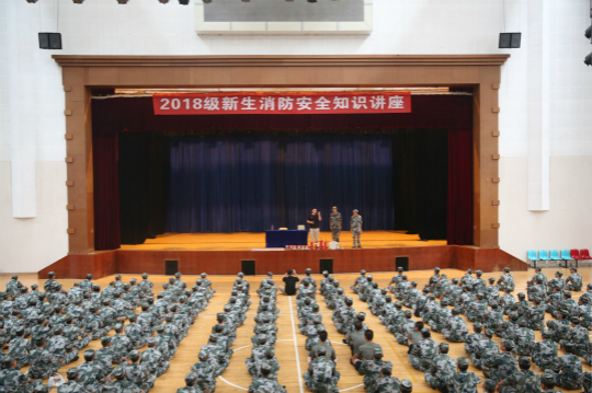 “火灾不可怕,预防是关键!”9月25日上午,为提高入学新生消防安全意识、掌握消防基本知识,我院保卫处分别在跳马校区体育馆组织消防知识专题讲座和在士官学院宿舍营区展开应急消防演练。讲座邀请到了湖南省协成消防防火中心吕教员进行主讲。