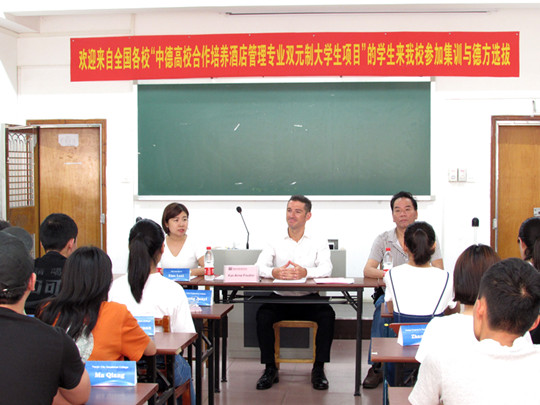 今年5月,经德国BSK国际教育机构引介,我院成为首批与德国IST管理应用技术大学、德国酒店行业协会正式签署酒店管理专业双元制教育项目三方合作协议的院校之一。6月,我院麦思行、欧缘两名同学正式报名申请进入该项目。7月,来自陕西、湖南、重庆等8所高校所推荐的“中德高校双元制教育项目”首批优秀学生,在中国集美大学进行英语集训并参加选拔。在此期间,我院两名同学遵守纪律、认真学习,表现出良好的精神面貌和优异的综合素质,给德方留下深刻印象。最终,经德方机构资格审查、英语语言能力测试、德国IST管理应用技术大学以及德国酒店行业协会面试等层层选拔,最终成功进入该项目,即将开始项目学习。