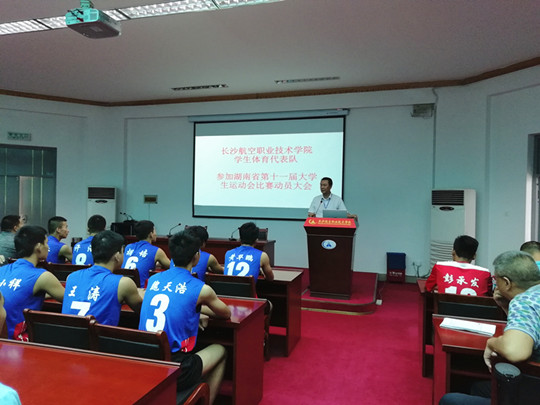 关云飞副院长在动员大会上充分肯定了近年来学院体育工作的成绩,重点指出体育在学生成长成才中的育人功能,体育运动训练不仅仅是能强身健体,更重要的健全人格,他指出要在体育运动中不断的塑造灵魂,塑造生命,要展现长沙航院良好的精神风貌,鼓励运动员在比赛中发扬顽强拼搏,奋勇争先的体育精神,最后他要求教练、运动员在比赛期间要确保安全,圆满完成比赛任务,为学院争光。