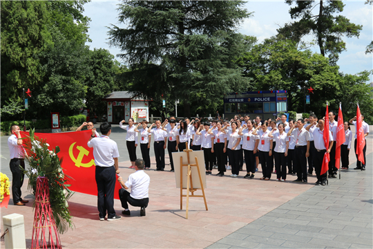 在红军烈士陵园,全体党员向革命先烈敬献了花篮,在纪念碑前,全体党员面对鲜红的党旗,高举右手,在蔡海鹏副书记的带领下庄严宣誓,重温入党誓词。铮铮誓言,是新时代的共产党员对革命先烈们许下的庄严承诺,他们牢固树立起不忘初心、牢记使命的责任担当。