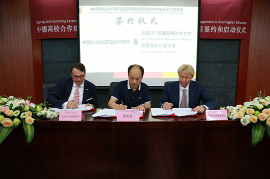 5月15日,我院与德国IST管理应用技术大学、德国酒店行业协会在北京正式签署双元制教育项目三方合作协议,标志着我院与德国合作培养双元制大学生项目正式启动。本次双元制教育合作是我院继德制工程师项目后与德国职业教育合作的又一重要成果,影响深远。