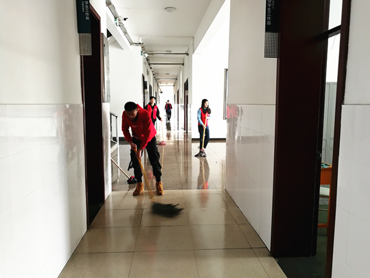 为纪念毛主席“向雷锋同志学习”题词55周年,推进学雷锋活动常态化,提高校园卫生环境,发挥学生干部模范带头作用,3月4日上午,院团委组织全院团学干部,优秀团员,举行“我奉献,我快乐”学生干部学雷锋义务劳动志愿服务活动,清扫校园教学和生活场所周边环境。