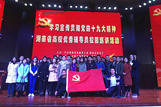 此次宣讲活动是湖南省委教育工委、省教育厅按教育部《关于开展“学习宣传贯彻党的十九大精神——千名高校优秀辅导员‘校园巡讲’和‘网络巡礼’活动”的通知》要求组织开展的,通过此次活动,辅导员们和青年学生在一起学习了并了解到现代的使命需青年们共同承担,青年们需要以共享思维学习知识练技能,以绿色标准勤俭生活勤锻炼,以开放胸怀接人待物看世界,以协调方法平衡学习和生活,以创新精神开拓未来之大业!(党委学生工作部 周静 供稿)