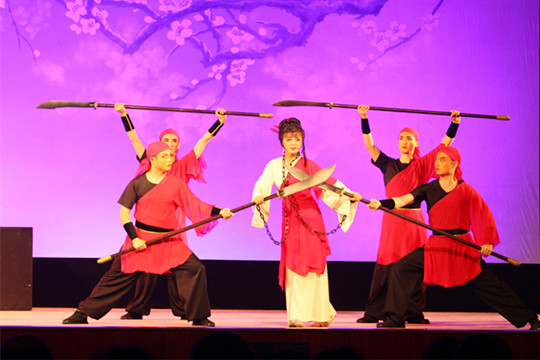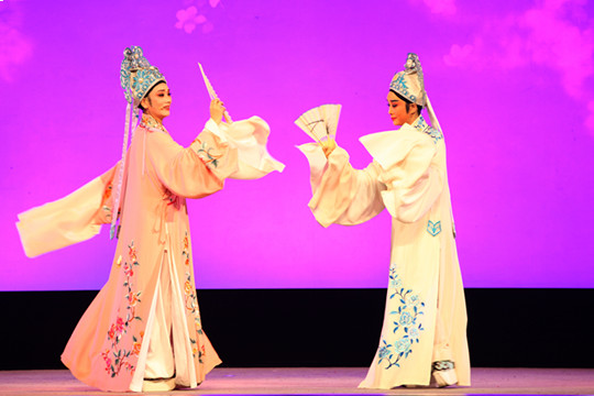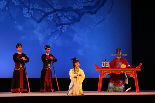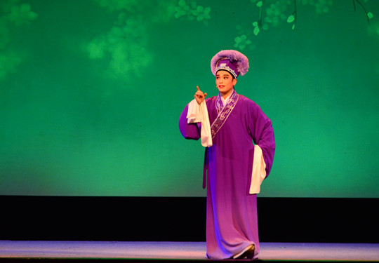 本次晚会由国家一级演员陈艺主持,整场演出共7个经典选段。首先表演的剧目是《窦娥冤·斩娥》,由优秀青年演员刘丽英倾情演绎,将窦娥的悲剧性演绎得淋漓尽致。在《祥林嫂·洞房》一折中,优秀青年演员王静与王炜佳将祥林嫂与贺老六的情感的变化表现得层次分明,两人的精彩表演引来了在场同学们的阵阵欢呼。越剧《天女散花》载歌载舞、动作优美,将天女散花这一场景演绎得美轮美奂,令人向往。《荆钗记·见娘》是本次演出的第二个悲剧性戏剧,优秀青年演员黄剑勋完美地将人物王十朋的大起大落表演了出来,与优秀青年演员王春燕扮演的王母配合得令人叫好。《白蛇传·断桥》由优秀青年演员潘凯成单人表演,他所扮演的许仙生动形象,唱腔优美,赢得了在场同学们的阵阵赞叹。《梁祝·十八相送》是我国广为流传的经典剧目之一,堪称“东方的罗密欧与朱丽叶”。山伯十八里相送英台,演员廖琪瑛与马誉嘉将二人难舍难分的感情表现得尤为精彩。最后,是由谢莉莉、汪舟格两位演员共同演绎的《陈三两·骂堂》一折。二人一柔一刚,以出色的表演将女性的柔弱、男性的阳刚充分展现在同学们的面前。