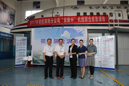 2017年南航湖南分公司“安康杯”机组联合应急演练在我院航空服务实训中心举行。