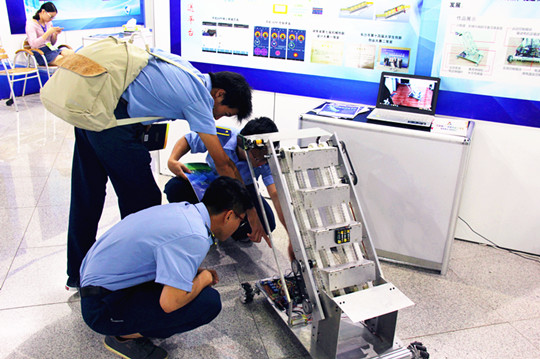 同学们认真查看创新设备
