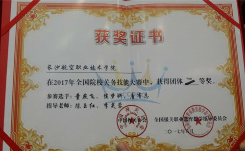 6月29日,2017年全国院校关务技能大赛在江西外语外贸职业学院闭幕,我院航空服务与管理学院民航运输教研室老师陈玉红、李芙蓉、孙功苗带队并指导学生参赛,电商1401班唐有志,民航1501班侯梦妍、童燕飞三位学生取得了团体二等奖的好成绩。