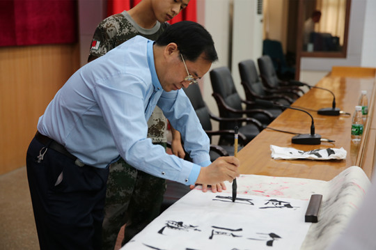 活动最后,邰先生演讲内容中的主人公之一——湖南书法家协会会员王光荣教授现场为学子们挥毫泼墨,鼓励大家“践行核心价值观 感恩资助中国梦”。