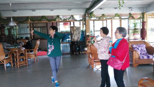 “镜水屏山开胜境,瑶林珠树撷名香”,山庄内外如诗如画的自然美景, 吸引着老同志走走停停、说说笑笑,话家常、叙友情,精神愉悦,心情舒畅,兴致盎然。他们不时拿出相机和手机拍照留念,将美景和笑容定格在照片中,有的谈天说地,围坐在一起话话家常,有的引吭高歌,重拾青春的风采,有的悠然垂钓,享受着鱼儿咬钩的乐趣,还有的坐在庄园内的摇椅上轻轻摇荡、闭目养神,自有一份怡然自得。整个活动过程中,老同志们沉浸在彼此相聚的喜悦和亲近自然的快乐之中。
